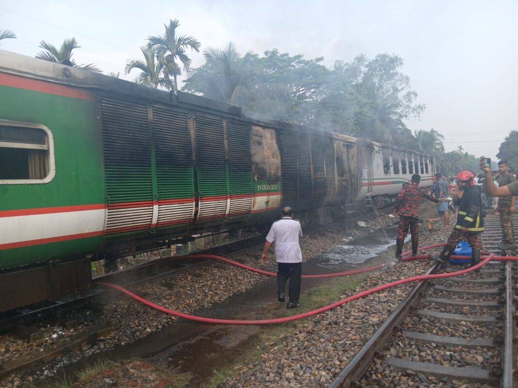 এদিকে অগ্নিকাণ্ডের ঘটনায় ক্ষয়ক্ষতির পরিমাণ নিরূপণ এবং আগুন লাগার প্রকৃত কারণ খতিয়ে দেখতে সংশ্লিষ্ট কর্তৃপক্ষ তদন্ত শুরু করেছে। স্থানীয়রা বলছেন, সময়মতো ট্রেন থামানো ও দ্রুত উদ্ধার তৎপরতার কারণে বড় ধরনের প্রাণহানি থেকে রক্ষা পাওয়া গেছে।